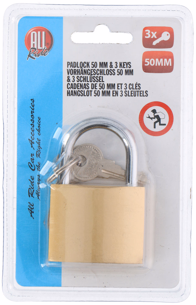 Gallery showing 2 images of ALL RIDE acél lakat, normál kengyellel 50mm, 3db kulccsal