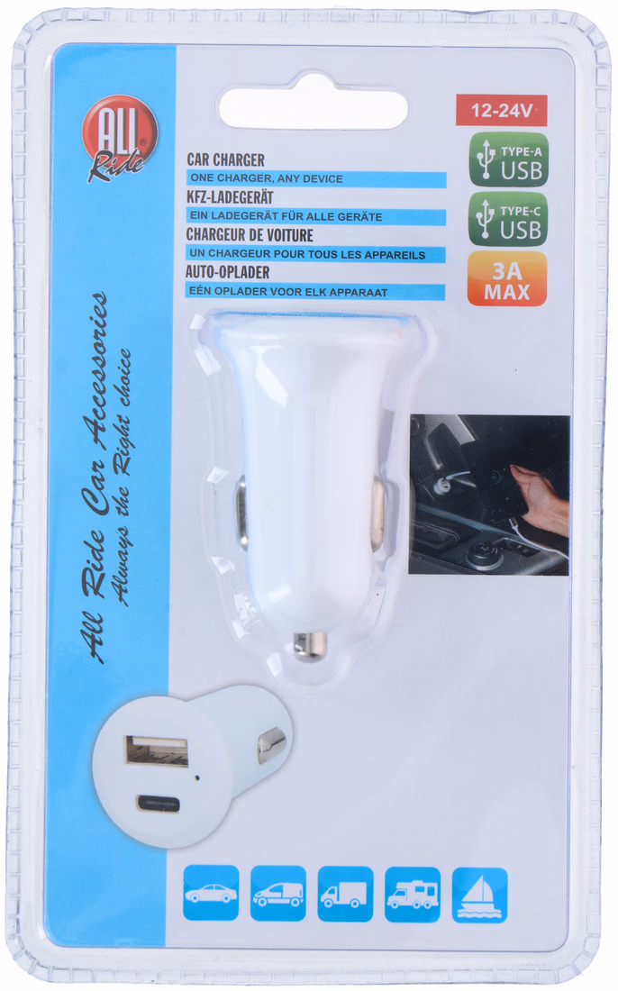 ALL RIDE Autós USB töltő Type-A, Type-C 12-24V 5V/3A ALL