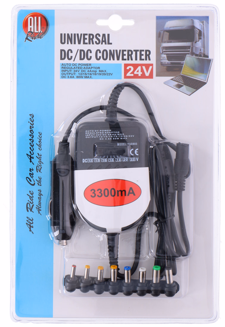 ALL RIDE univerzális DC/DC konverter 24 V és 12/15/16/18/19/20/22 V, 3300mA 24V