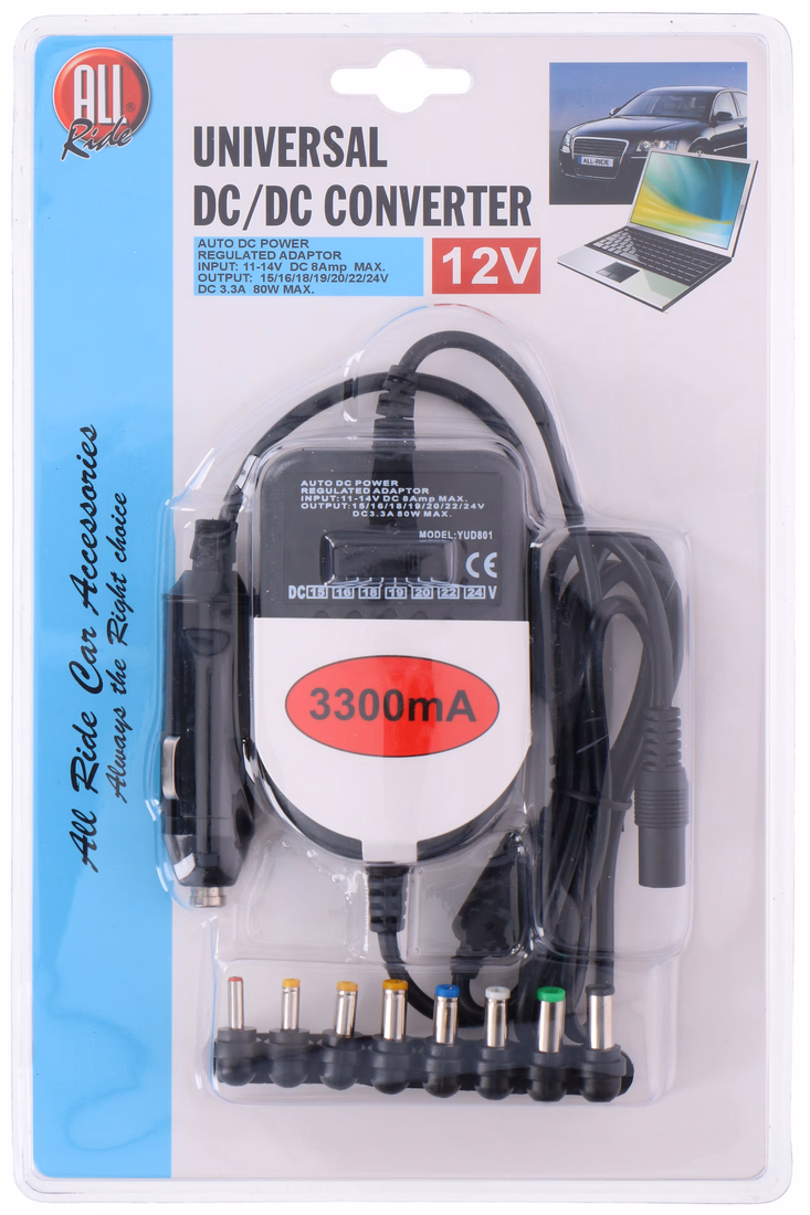 ALL RIDE Univerzális laptop töltő autóba 11-14V, 3,3A, 80W