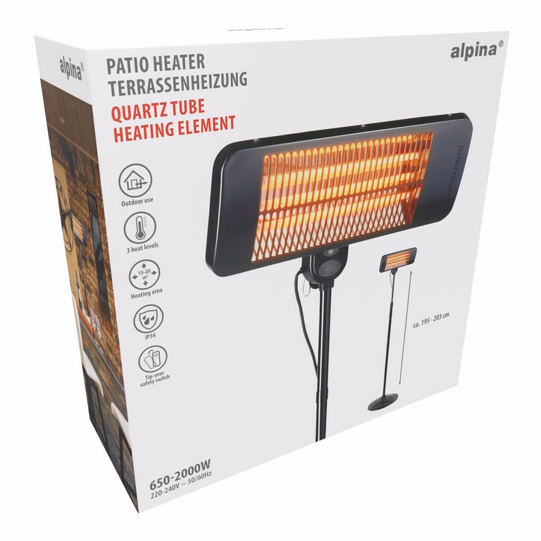 ALPINA álló teraszmelegítő 650-2000W 50x50x195cm