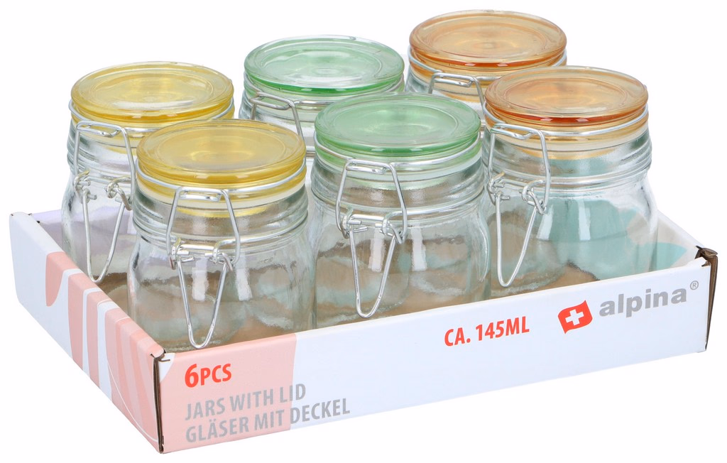 ALPINA Csattos befőttesüveg színes tetővel 6db 22x14,5x9cm