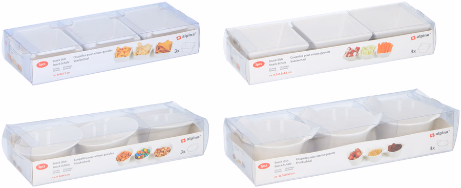 ALPINA Előétel kínáló tálkák 3 darab, kerámia, 4 féle