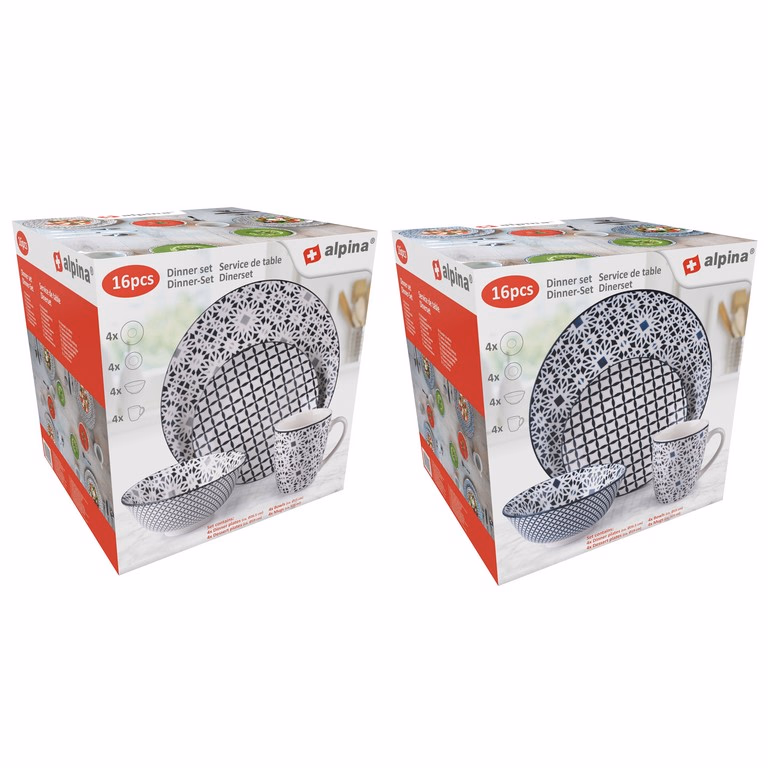 ALPINA Étkészlet 16 részes, 4 személyes 52x28x30cm 2 féle