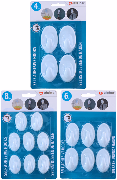 ALPINA Fali kampó öntapadós fehér, 4/6/8db, 3 féle