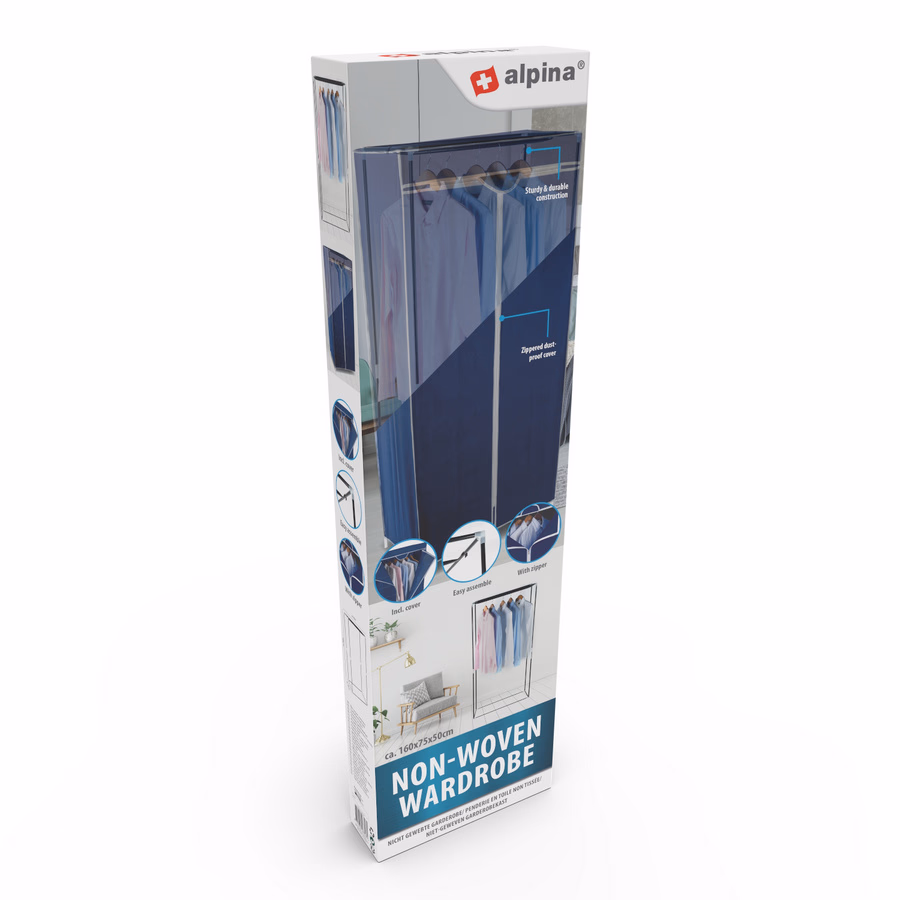 ALPINA Gardrobe szekrény, csőváz+textil 75x50x160cm kék
