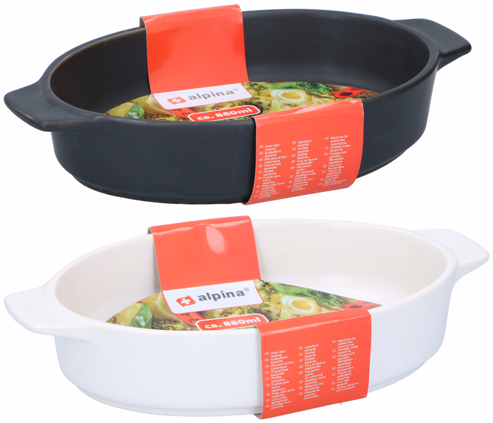 Gallery showing 4 images of ALPINA kerámia sütőtál 27x17x5cm fehér/fekete ovális