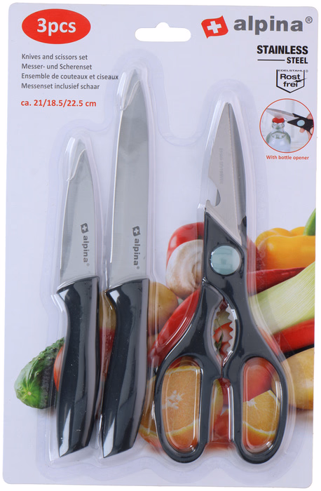 ALPINA Kés & olló szett 3 darabos 22,5/18,5/21cm