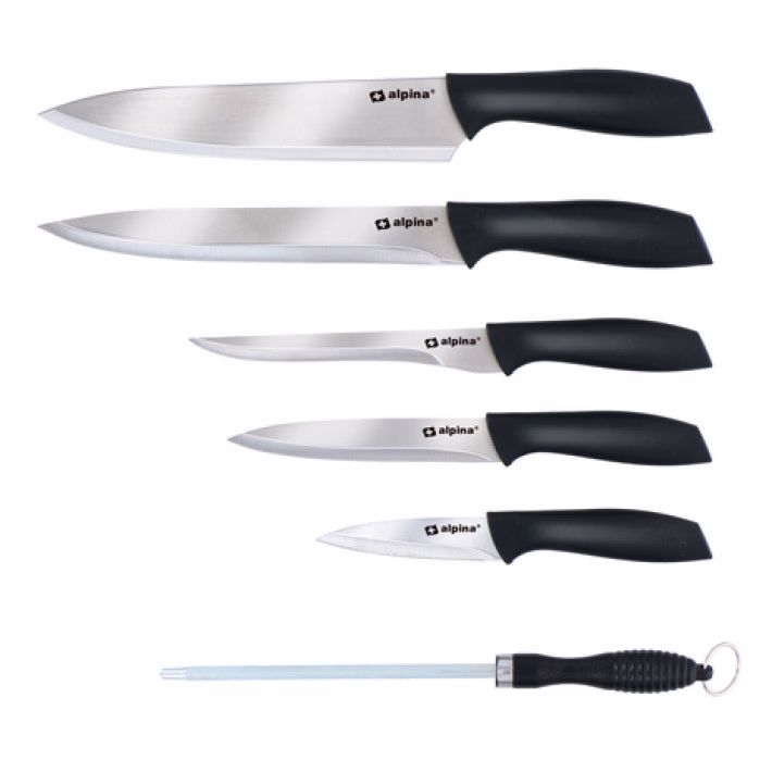 ALPINA kés-élező-vágódeszka 8 részes szett, rozsdamentes acél