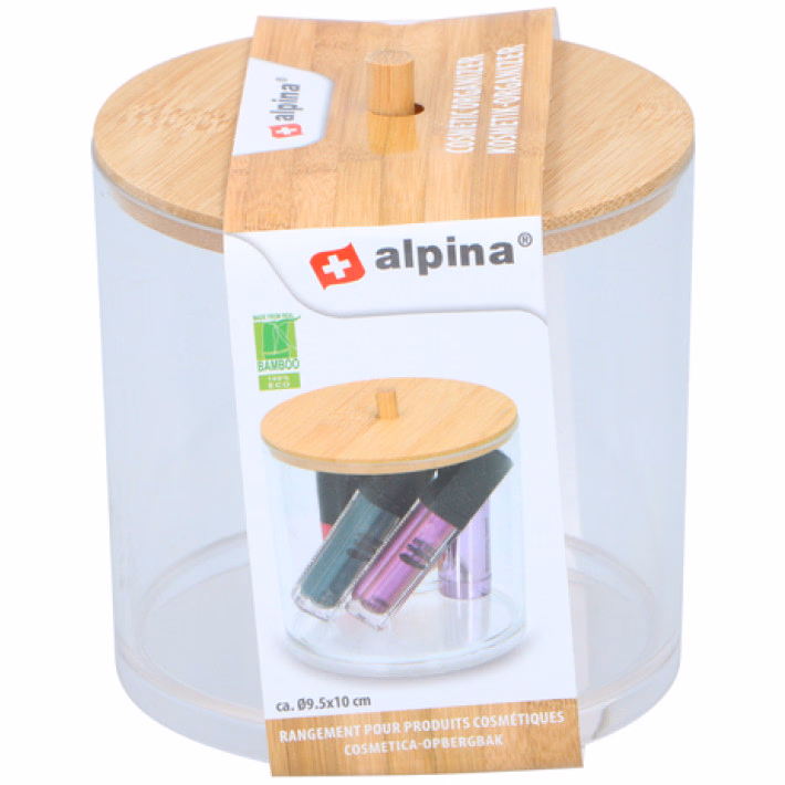 ALPINA Kozmetikai tároló henger műanyag+bambusz tető