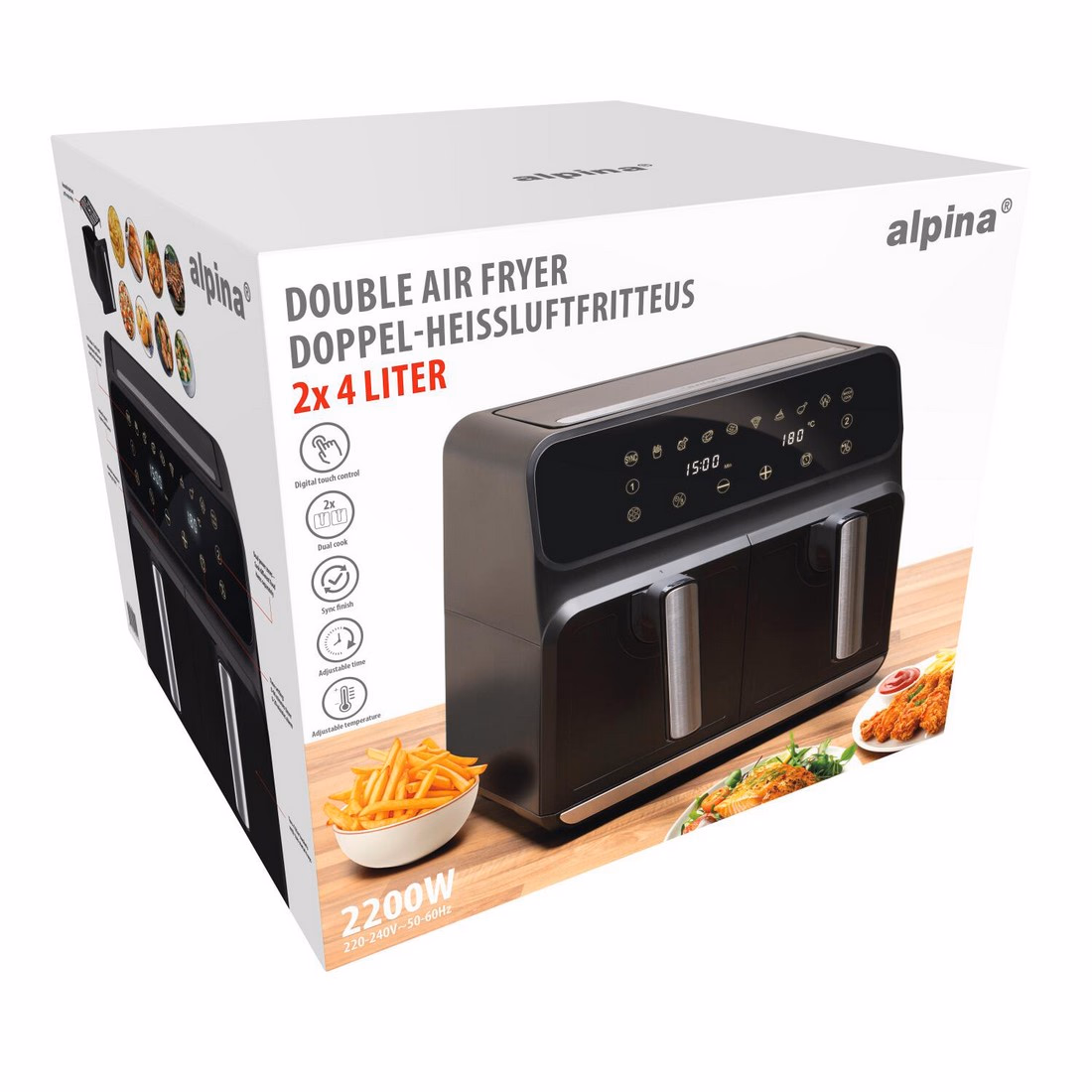 Gallery showing 4 images of ALPINA Légsütő dupla 8L 230V 1700W 37,8x36,4x31,9cm 7kg