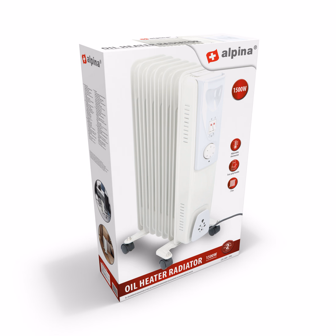 ALPINA Olajradiátor 1500W 7 tagú 120mm 3 fokozat hőfokszabályzó 23,5x33x55cm CB