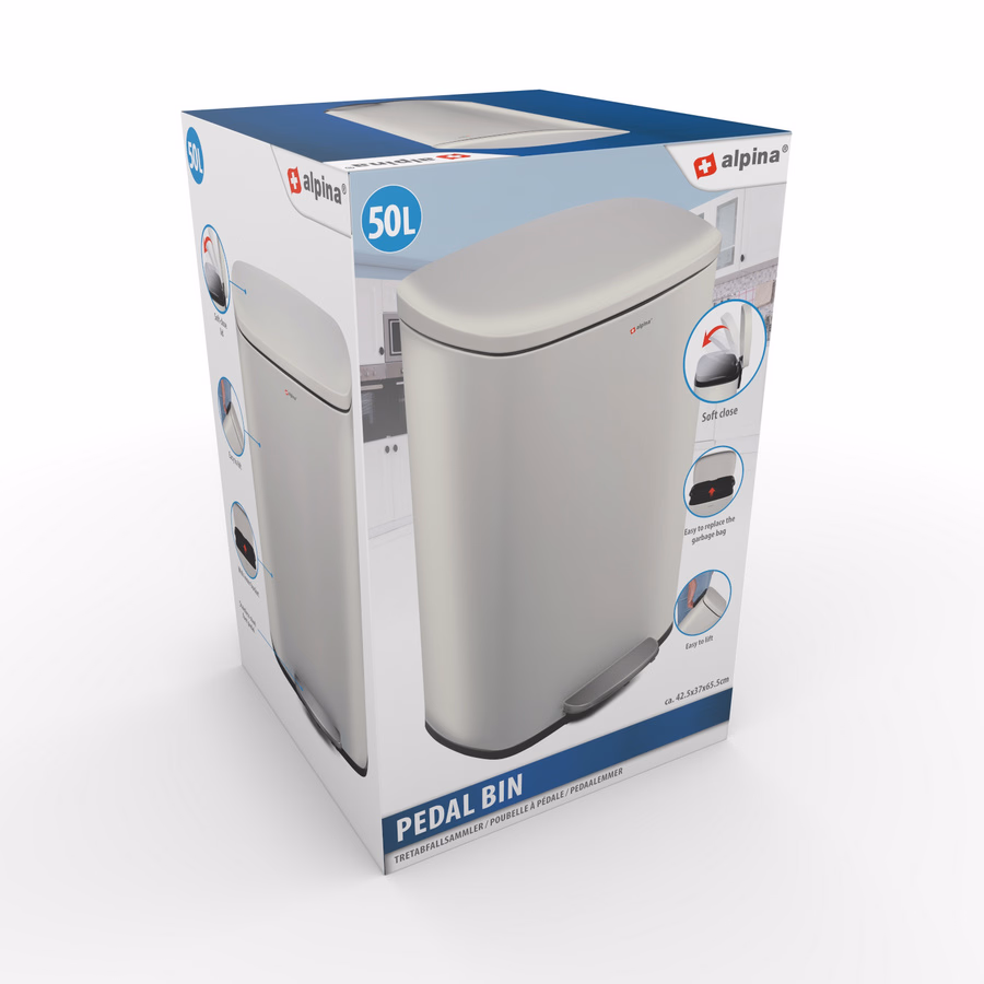 ALPINA pedálos szemetes 50L, lágyan csukódó 42,5x37,2x65,7cm