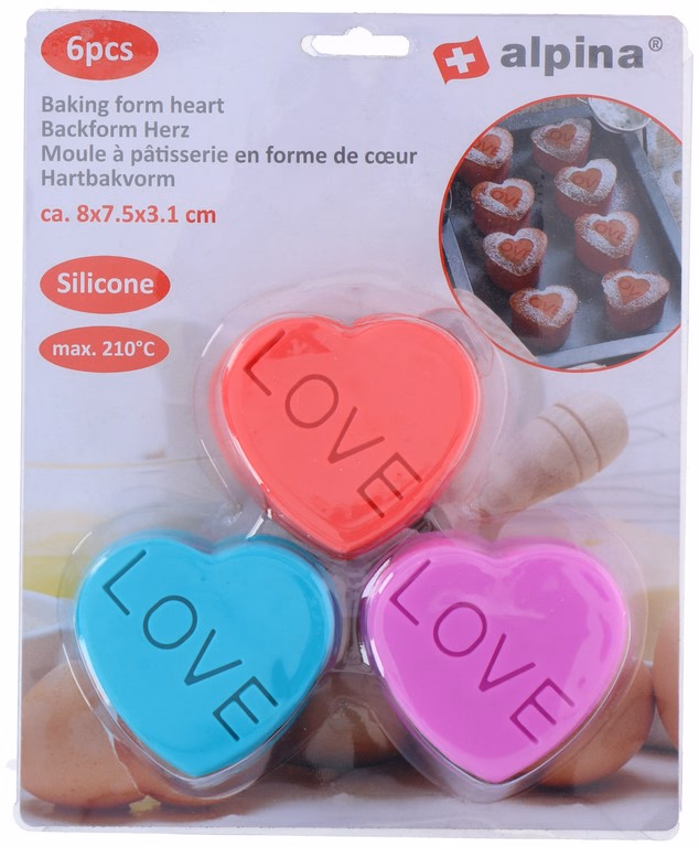 ALPINA Sütőforma szív forma "LOVE" felirat 6db szilikon 8x7.5x3.1cm