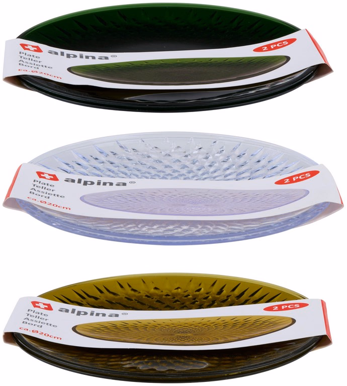 Gallery showing 1 images of ALPINA Tányér 2db 3 színban műanyag Ø20xh1,5cm