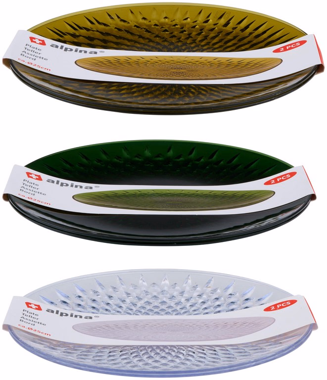 Gallery showing 1 images of ALPINA Tányér 2db 3 színban műanyag Ø25xh2cm