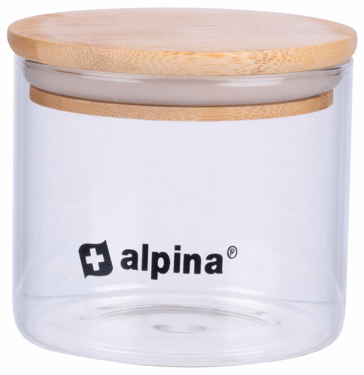 ALPINA Tároló doboz üveg, bambusz tetővel 0,5L 10x10x9cm