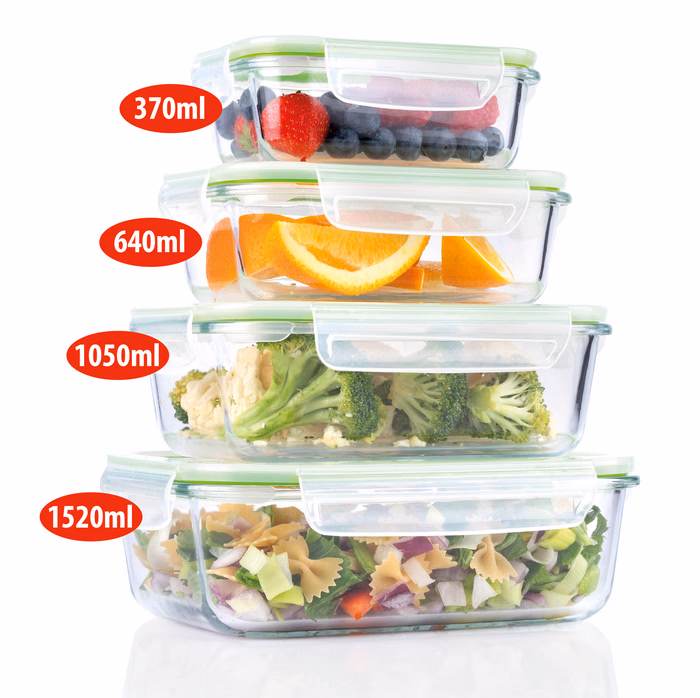 Gallery showing 6 images of ALPINA Tároló edény 4 darabos szett 370/640/1050/1520ml üveg, műanyag tetővel