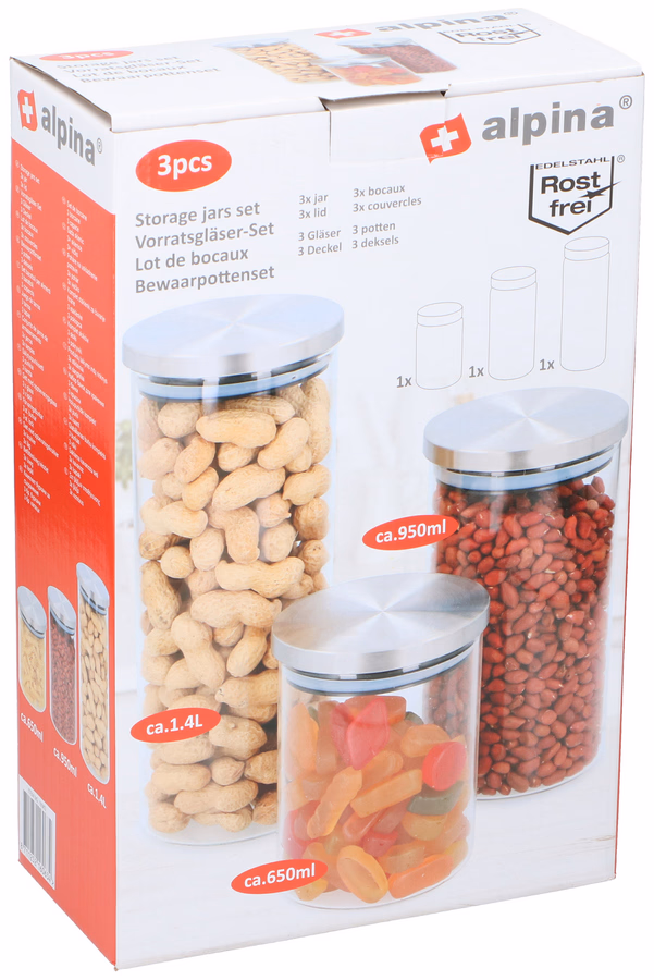 Gallery showing 2 images of ALPINA Tároló üveg szett tetővel 3 darabos 650/950/1400ml