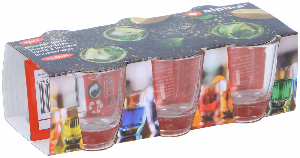 Jellemzők: Kiszerelés: 6x45ml Szín: víztiszta Anyag: üveg Mosogatógépben mosható