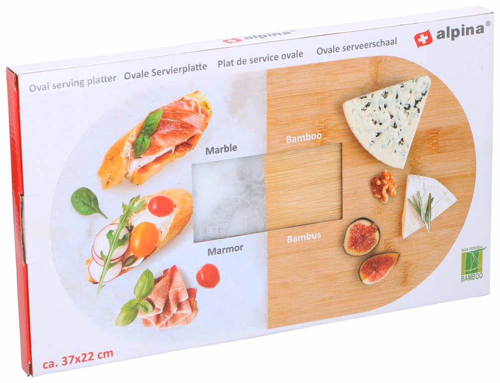 ALPINA Vágódeszka ovális márvány/bambusz 37x22x1.4cm
