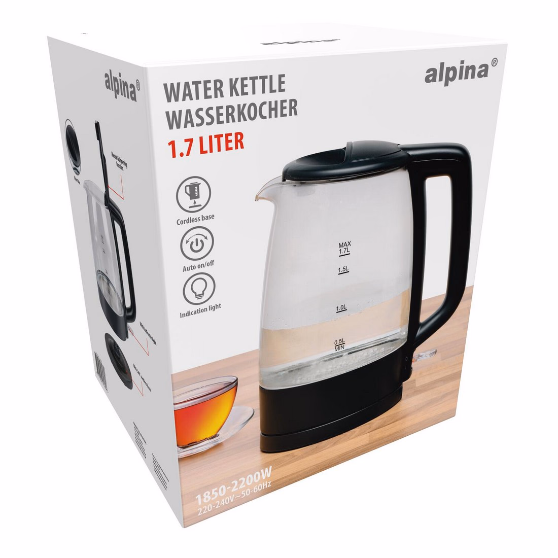 ALPINA Vízforraló, elektromos, üveg, 1,7L 21.5x14.9x24.1cm