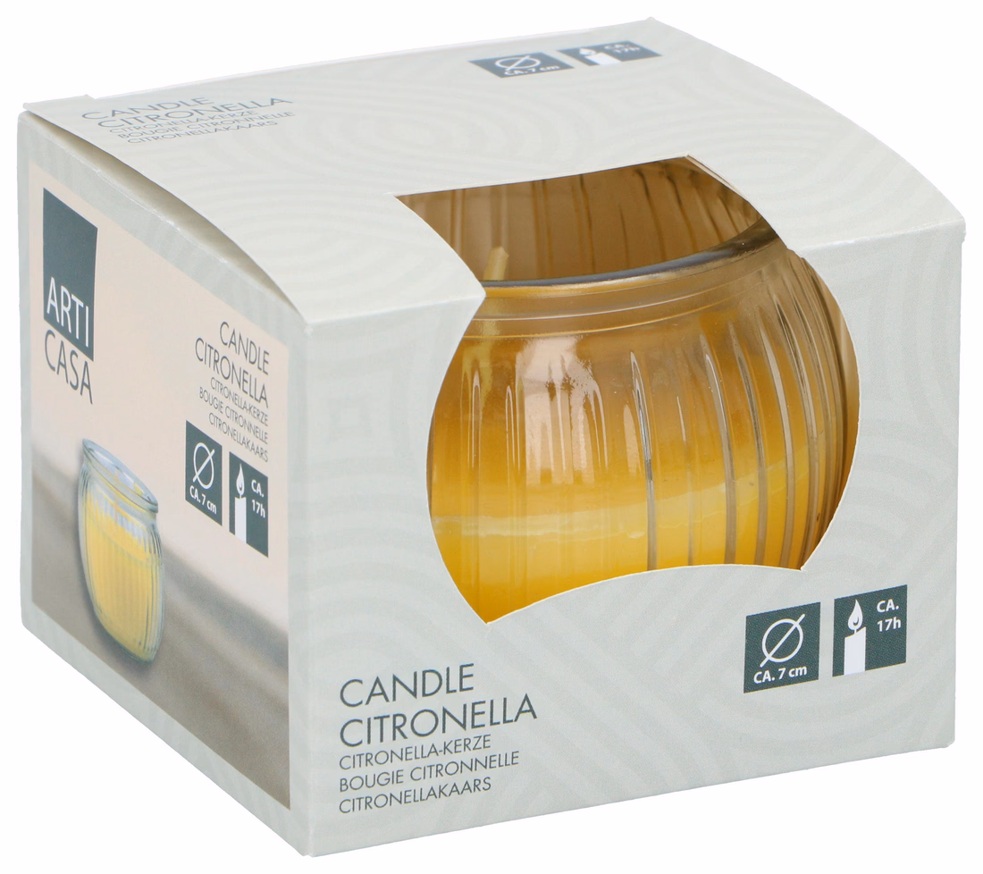 ARTICASA Citronella gyertya üvegben, 17óra égési idő, 85gr wax 7x6cm -