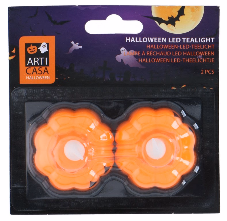 ARTICASA Halloween tea light LED 2pc Hallow Ø4,7x4cm 13gr PP BL incb3xLR1130 -