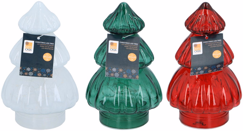ARTICASA mini karácsonyfa LED 3 féle, Ø12xh20,5cm, 3*AAA (nem tartozék)