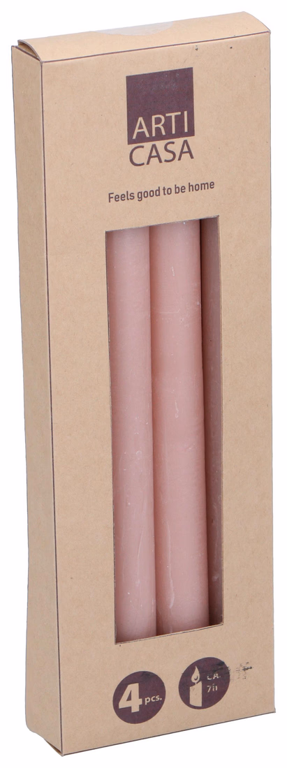 ARTICASA Rusztikus gyertya papírdobozos 4db 25cm rózsaszín -