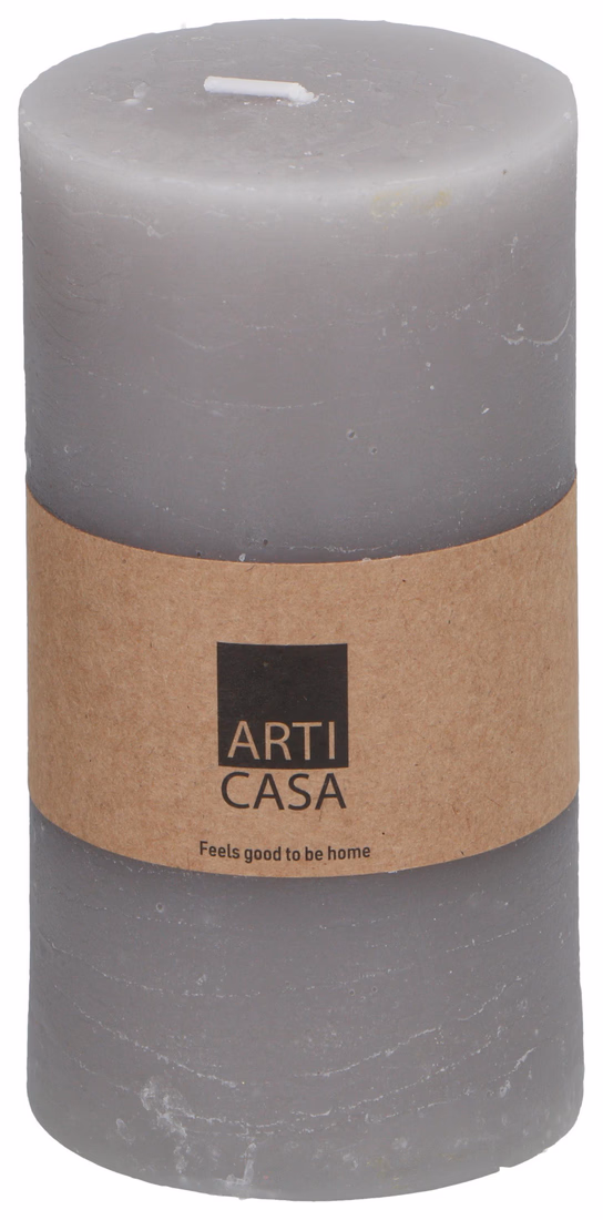 ARTICASA Rusztikus oszlopgyertya 7x7x13cm világosszürke -