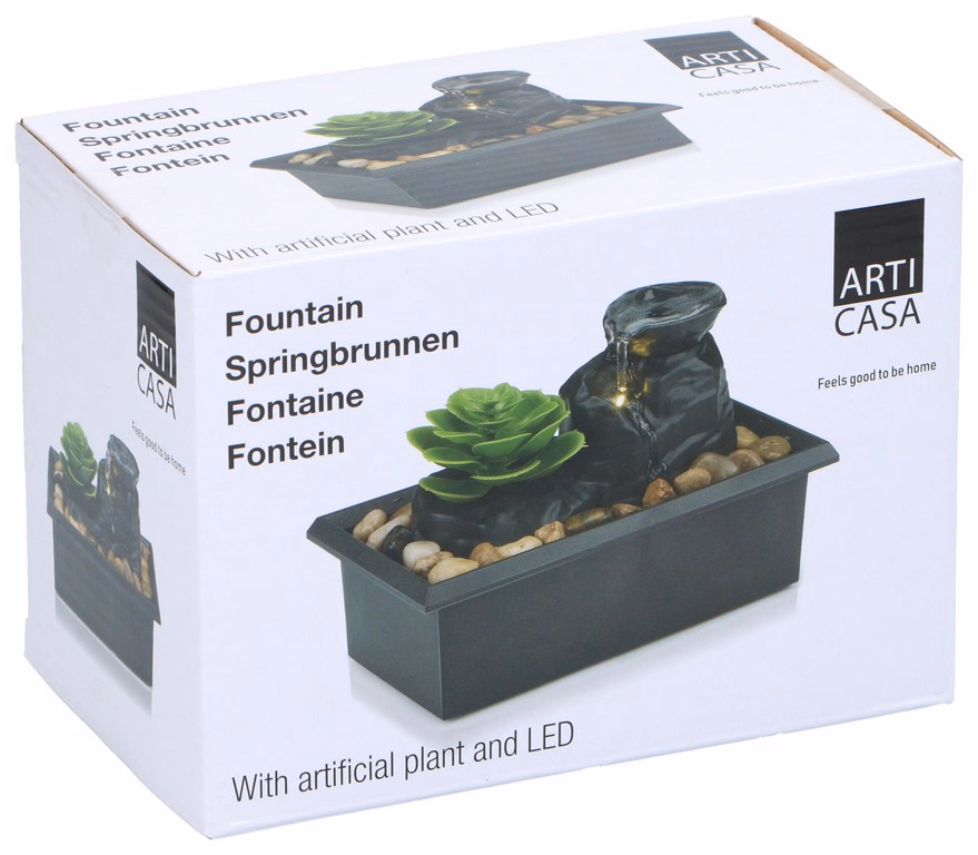 Gallery showing 1 images of ARTICASA Szökőkút műnövénnyel 17,5x10,5x12cm, 2XAA (nem tartozék