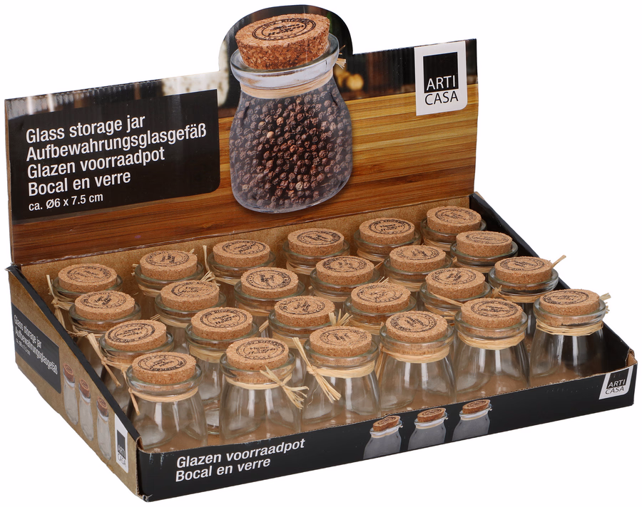 ARTICASA Tároló üveg parafadugóval, 6x7,5cm displ(24)