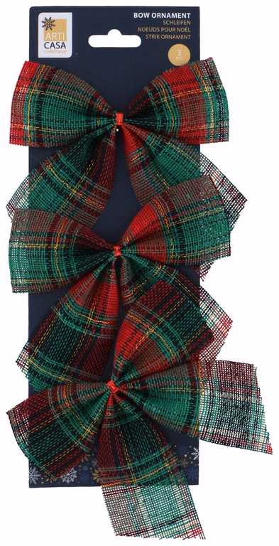 ARTICASA Xmas Bow 3pc green/red 13x0,1x14cm 22gr LINEN TOC -