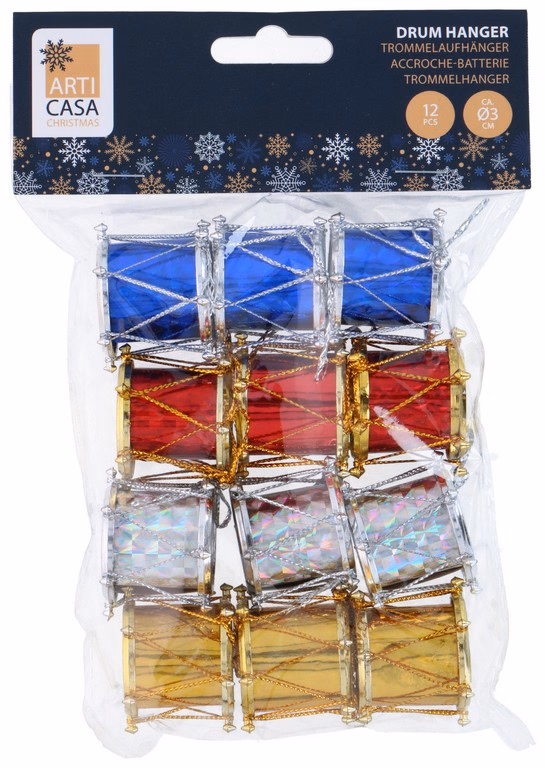 ARTICASA Xmas drum hanger 12pc Ø3xh3cm 30gr PAP PL PB/HD -