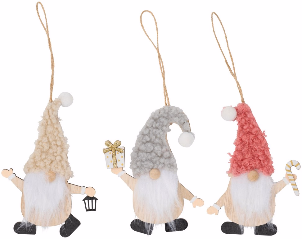 ARTICASA Xmas gnome hanger 3as 10x5x23cm 16gr WD PES HT -