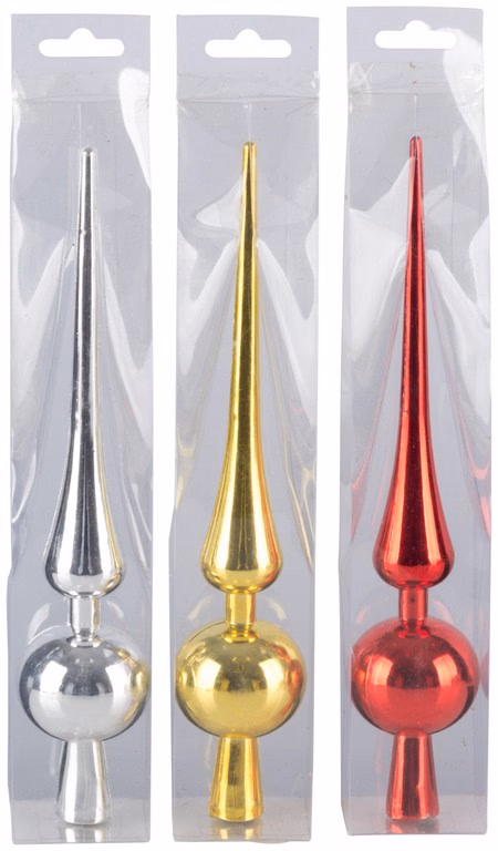 ARTICASA Xmas tree top 25cm 3as 3clr red/silver/gold PET -