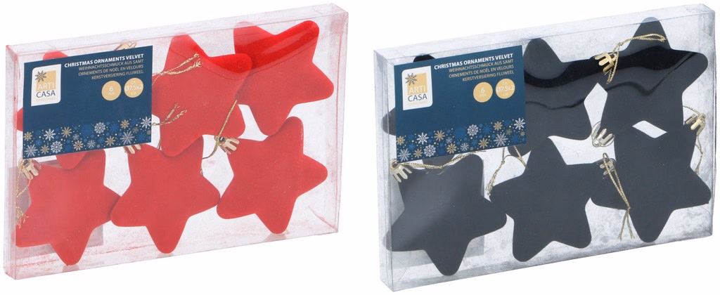 ARTICASA Xmas velvet star 2as 6pc 20,5x2,5x15,5cm 65gr PP PVC -