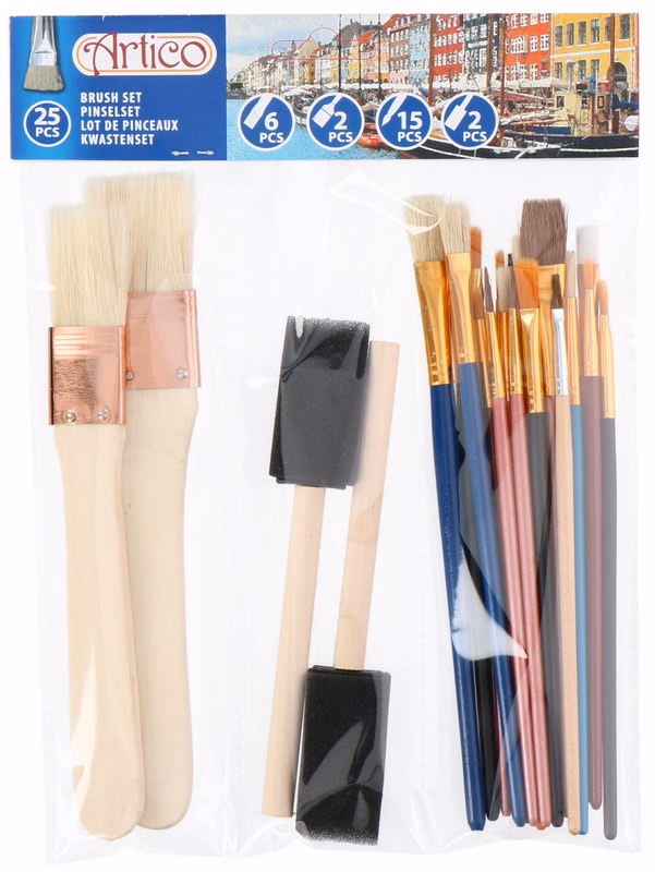 Csomag tartalma: 25 db ecset, különböző formájú és méretű