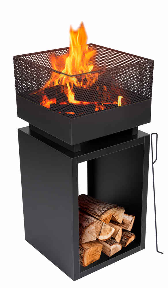 Pókerrel, szikraszűrővel és tárolóhellyel a rönkök számára