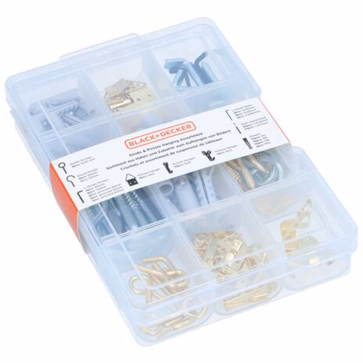 BLACK+DECKER Csavarozható kampó, tipli és akasztó szett, 198db-os, PVC dobozban