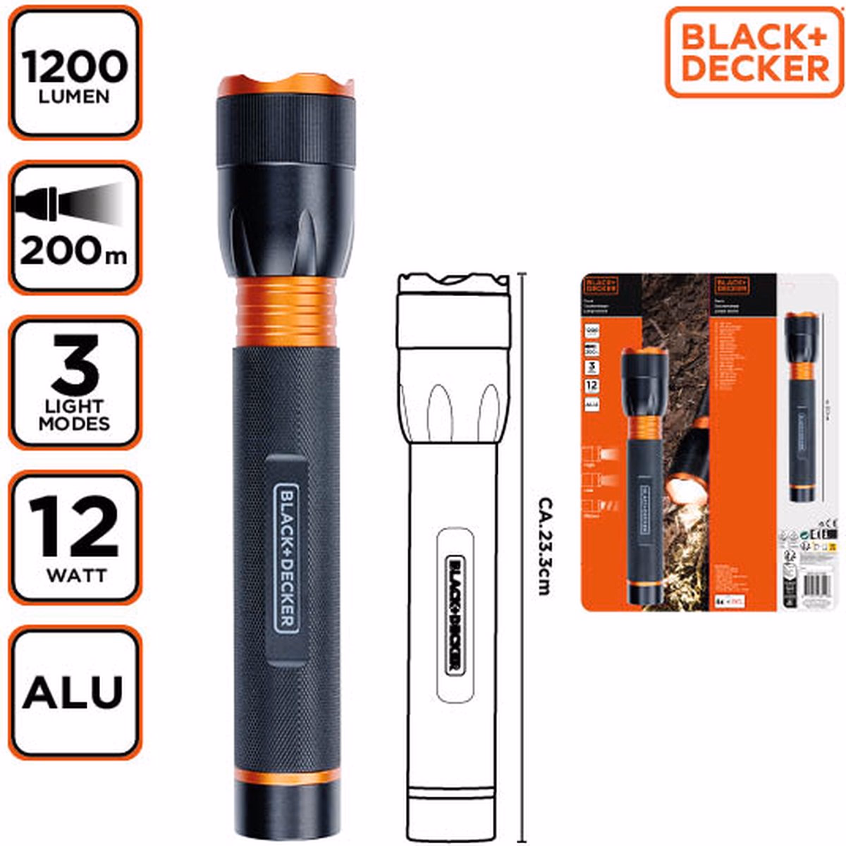 BLACK+DECKER Elemlámpa LED 1200lmn 200m fénysugár 4,3*23,3cm 360gr