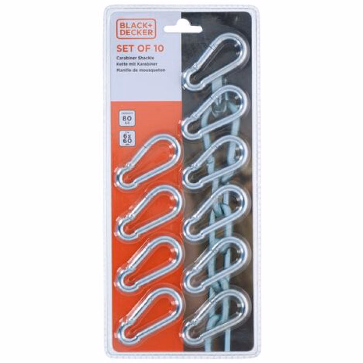 BLACK+DECKER Karabiner szett 10db 6x60mm 80kg teherbírás (BXCHSF7103)