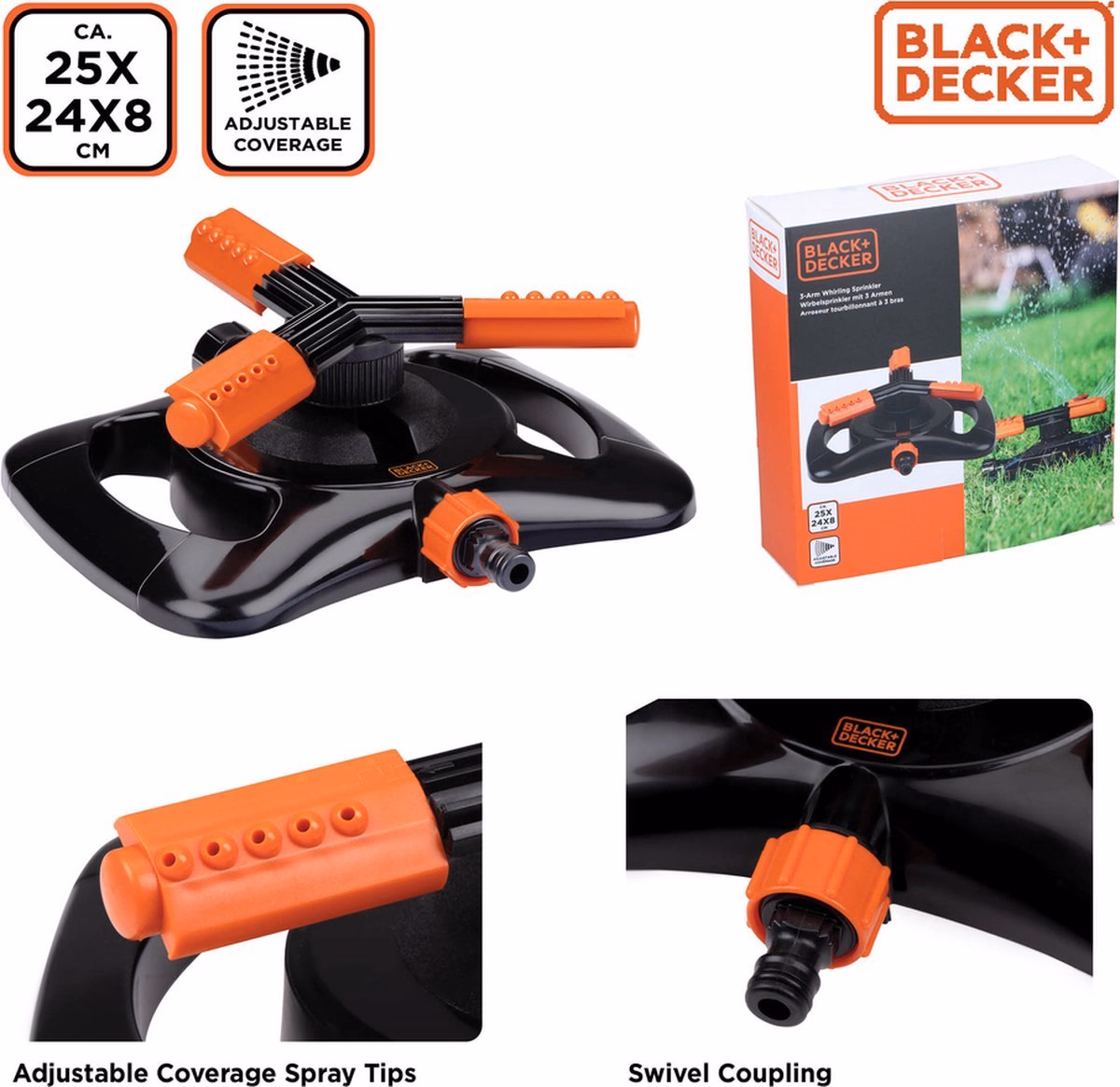 BLACK+DECKER oszcilláló öntöző 3-ágú 25x24x8cm