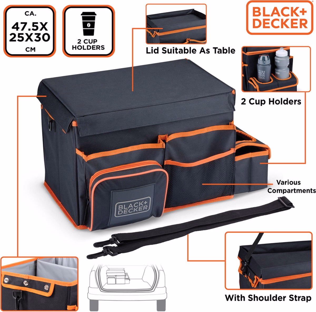 BLACK+DECKER rendszerző - 47,5 x 25 x 30 CM - Hordozható szíjjal - Pohártartókkal - Szürke / Narancs