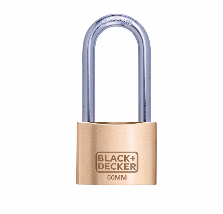 BLACK+DECKER Sárgaréz lakat, hosszított kengyellel, 50mm, 3db kulccsal 2,4x14,7x19,2cm 311gr