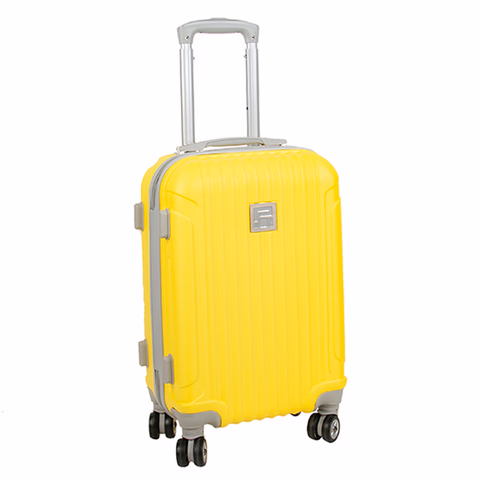 Small suitcase, two large compartments with tie down straps to secure the clothes (one zipped pocket inside), upright pull handle, top and side carry handles, four wheels for easy mobility
