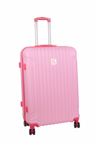 Big suitcase, two large compartments with tie down straps to secure the clothes (one zipped pocket inside), upright pull handle, top and side carry handles, four wheels for easy mobility