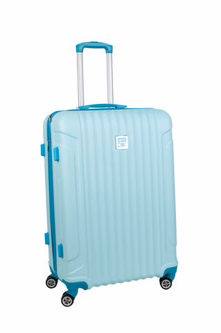 Big suitcase, two large compartments with tie down straps to secure the clothes (one zipped pocket inside), upright pull handle, top and side carry handles, four wheels for easy mobility