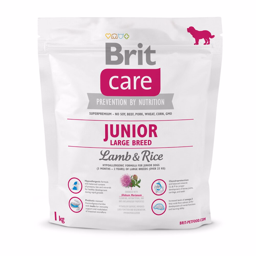 Brit Care száraz kutyaeledel, Junior, Large Breed, Bárány és Rizs, 1 kg